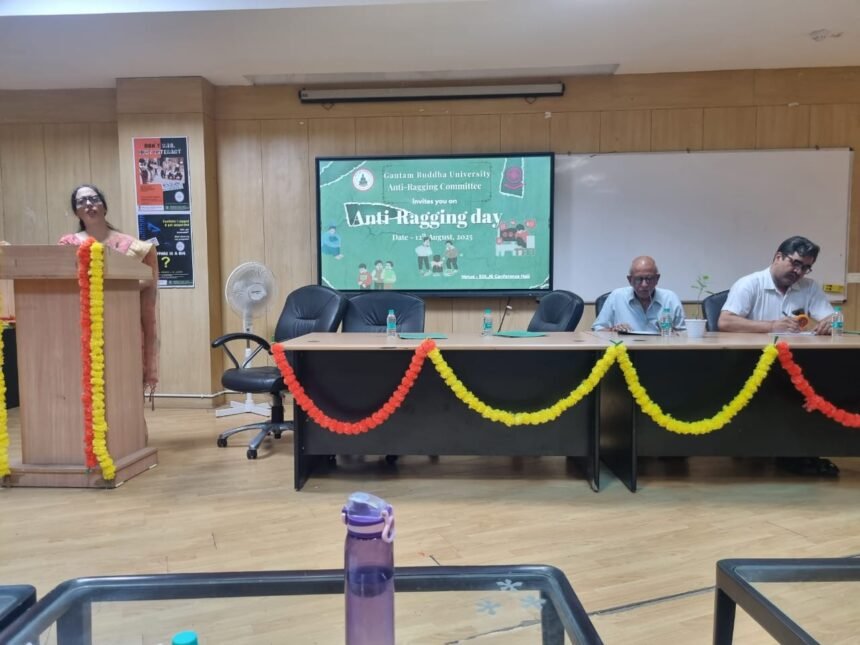ग्रेटर नोएडा, 12 अगस्त 2025: गौतम बुद्ध विश्वविद्यालय की एंटी रैगिंग समिति ने 12 अगस्त 2025 को विश्वविद्यालय के माननीय कुलपति प्रो. राणा प्रताप सिंह और कुलसचिव डॉ. विश्वास त्रिपाठी के मार्गदर्शन में अपना उद्घाटन कार्यक्रम सफलतापूर्वक संपन्न किया। कार्यक्रम में विश्वविद्यालय के विभिन्न विभागों के छात्र-छात्राओं, समिति के सदस्यों, संकायजनों और विशिष्ट अतिथियों प्रो. एन. पी. मेलकानिया (अधिष्ठाता, शैक्षणिक) एवं डॉ. मनमोहन सिंह (अधिष्ठाता, छात्र कल्याण) ने सहभागिता की।